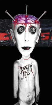 Prophetic words indeed... Having emerged from the sweaty environs of London's notorious "Batcave" club in the early 1980s, the legendary Alien Sex Fiend -- the uncompromising and progressive musical organism -- is now celebrating its 28th year. Led by veteran visionaries of space, time and sound, the beautifully bizarre duo of frontman Nik Fiend (that voice, crazed theatrics and inimitable art) and Mrs Fiend (crunching beats, keys and assorted noises), the band has continually and consistently forged new, unorthodox musical terrain. In 2010 Alien Sex Fiend persist on this mission, introducing yet another amalgamation of style, beat and discord on their 13th studio album, "Death Trip" (release date May 3rd) and taking its explosive live extravaganza into an unsuspecting Europe for a select number of headline festivals and shows. "Death Trip", the newest fiendish masterpiece - recorded in "Hallucinosound," with the warning "To prevent Brain Explosion, listen to this record from a safe distance" - is presented by Alien Sex Fiend's own 13th Moon Records on CD, Limited Edition 12-inch vinyl, and by download at iTunes, Napster and others. The first studio album released by the band in six years, it is self-written, self-produced and self-financed - truly and totally independent. The vinyl is strictly limited to 666 (!!!) copies, hand numbered by Nik Fiend personally; both formats feature original artwork throughout. Travelling through a diverse sonic spectrum, each of its ten tracks connects to the next, forming a sci-fi / horror / B-Movie themed journey, the "Death Trip". From the opening track "Erazerdrone," the listener embarks on a voyage into uncharted realms of sound and sanity. After exploring the zombie-encrusted ground of "Land Of The Living Dead," the brain is invaded by the surging "One Way Ticket," a twist on old skool 80s Fiend, before a phase of fun-time terror with "The Hills Have Eyes." "B.B.F.C." and its punk-styled pounding gives way to the industrial force and supernatural acid guitar of "Dance Of The Dead" via "Intensify The Treatment" - a nightmarish scenario. "Voodoo" hypnotises with its cutting-edge rhythms and otherworldly realms are to be discovered on "Beyond A Psychic Evil" before the crescendo of closing track and soon-to-be-classic "Oops! Wrong Planet" triumphantly ends the expedition. The Death Trip is complete. Alien Sex Fiend's infamous live shows are must-be-seen